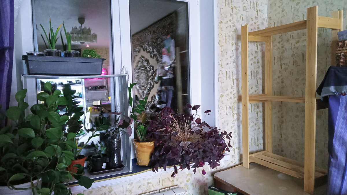 Разгрузила малый стеллаж в спальне. Сокращаю количество освещаемых полок. Так же выключила второй малый стеллаж. На нем "уснувшие" или сдохшие примулы.