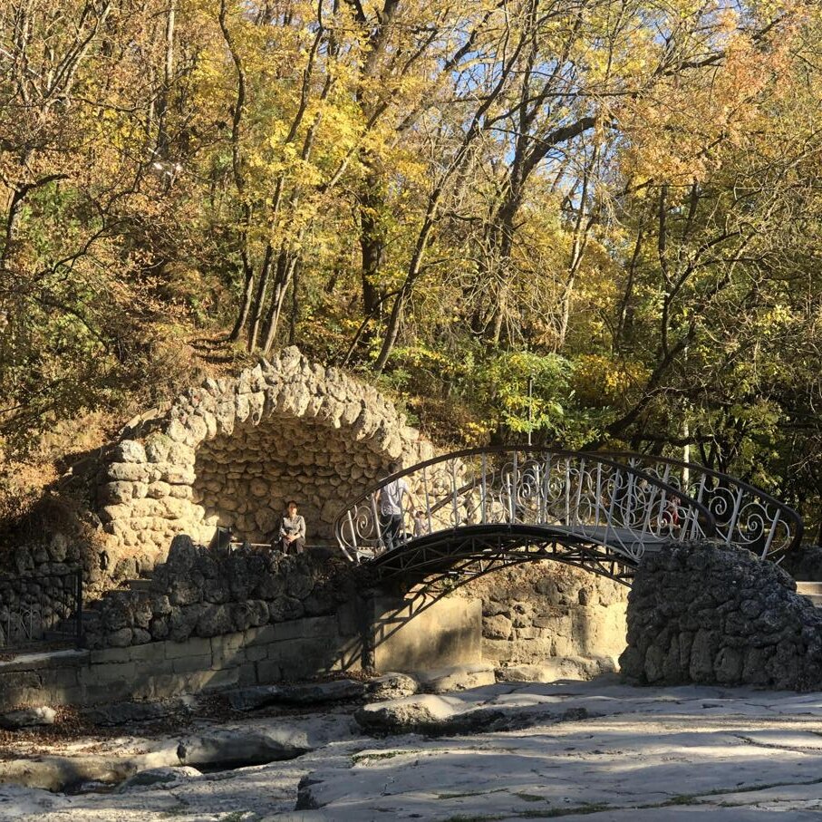 Новый осенний день и мы начинаем новую прогулку! С мостика "Дамский каприз", рядом с которым расположился грот, на фоне которого туристы и отдыхающие часто любят фотографироваться. Нижний парк - первый рукотворный парк в Кисловодске. Парк самый старейший. С него началась курортная история для отдыхающих. Кисловодск начинался с улицы Реброва, которая выходила к Нарзанной галерее, а затем аллея нижнего парка продолжила путь к красивому променаду. Протянулся парк вдоль реки Ольховка, где в тени деревьев можно отдохнуть на уютных скамейках, слушая тихое неспешное журчание реки, ну и мы не будем спешить - будем ценить время и предаваться отдыху! С нижнего парка началась первая глава в жизни Кисловодска - прогулочная и оздоровительная! Осень не про грусть и холодок наступающий зимы. Мне больше нравится такой вариант осени - пора для чудесных прогулок, когда твой взор окутывают свои убранством деревья, даря калейдоскоп разноцветных красок! Осень в Кисловодске дарит такие возможности и