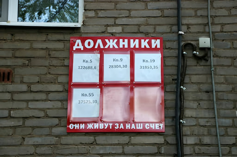 Существуют и более хитрые методы: записи в квитанциях («Вы в списке должников, оплатите срочно»), публикации в СМИ или соцсетях («Должники дома №5: Иванов — 20 000 руб.»), а также «щиты позора» у входа в дом и SMS-рассылки с ссылками на списки.