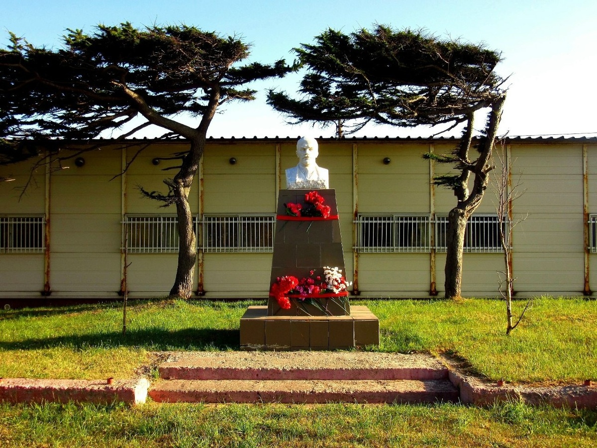 Памятник Ленину на курильском острове Итуруп. Даже деревья полевели от такого соседства.
