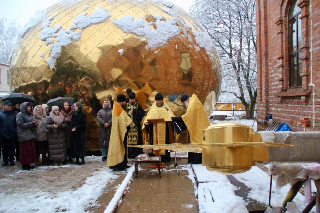 Торжественный молебен, установление креста и поднятие купола на строящийся храм иконы Божией Матери «Всех скорбящих Радость» Филаретовского прихода в Лобне