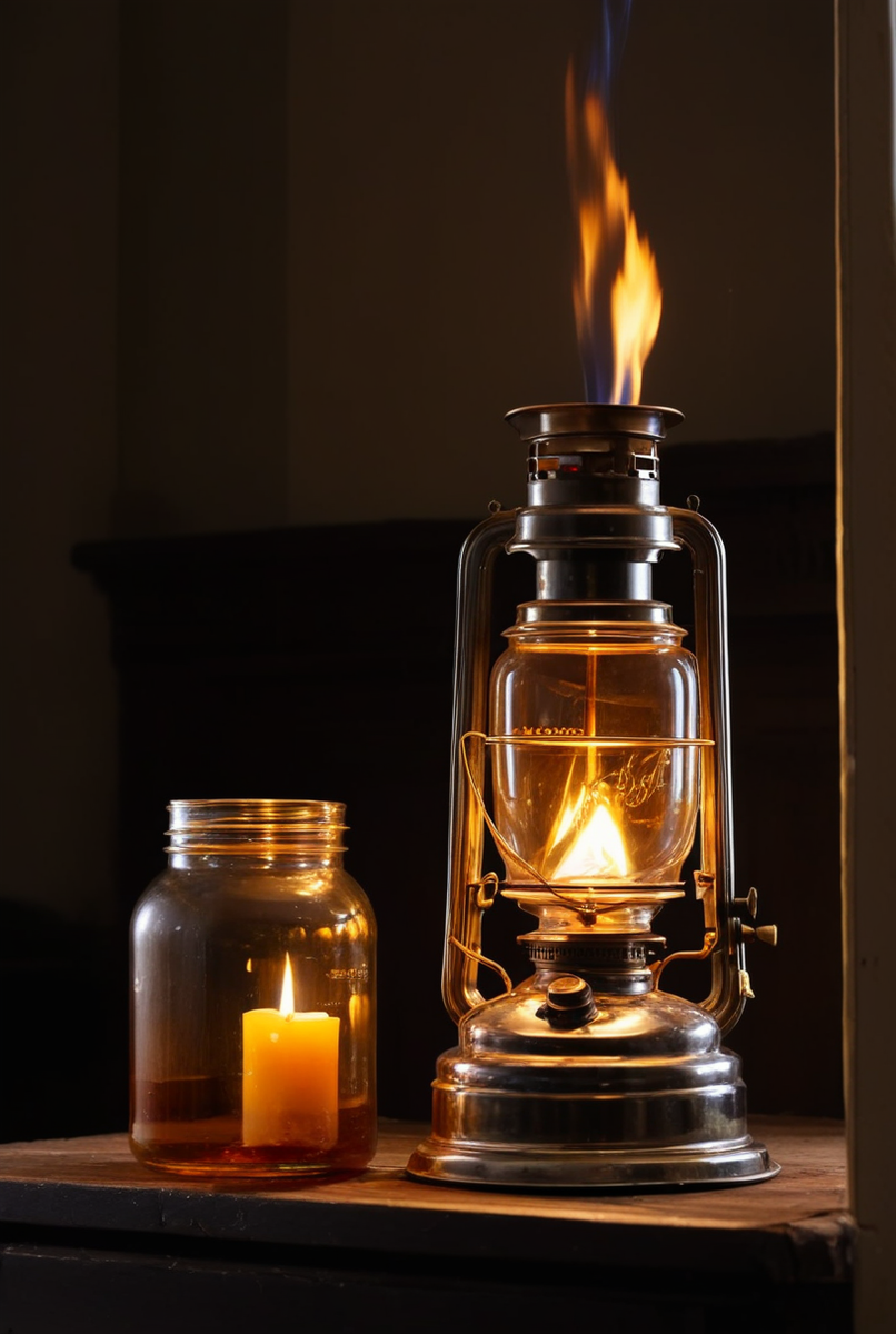 Керосиновая лампа — классический источник света. Качественный осветительный керосин‚ поднимаясь по фитилю‚ обеспечивает гладкое горение и яркое пламя без копоти и нагара.