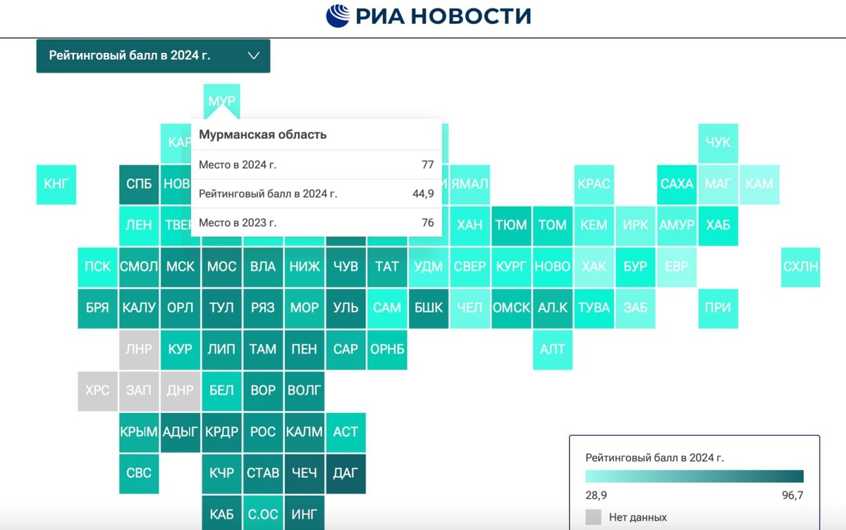 В ответ на пост 📉 Верно, но о-о-о-очень медленно Мурманская область опускается вверх в рейтигне регионов по приверженности населения к здоровому образу жизни, который составляет РИА Новости: по итогам 2024 года Заполярье поднялось ещё на одну строчку вниз, и всё ещё осталась в ТОП-10 отстающих (77 место с итоговым баллом 44,9). Отрицательный подъем за четыре года выглядит так: – 2021 год – 78 место; – 2022 год – 75 место; – 2023 год – 76 место; – 2024 год – 77 место. Такими темпами отрицательного роста Мурманская область никогда не выберется из замыкающей десятки. Самое время задать вопросы курирующей социальную политику (спорт и минздрав) вице-губернаторам Анне Головиной и Дмитрию Панычеву: они, почему-то, в группе «отличников» по версии ТГ-канала «Замгубернатора». ❄ «Арктический Обозреватель»