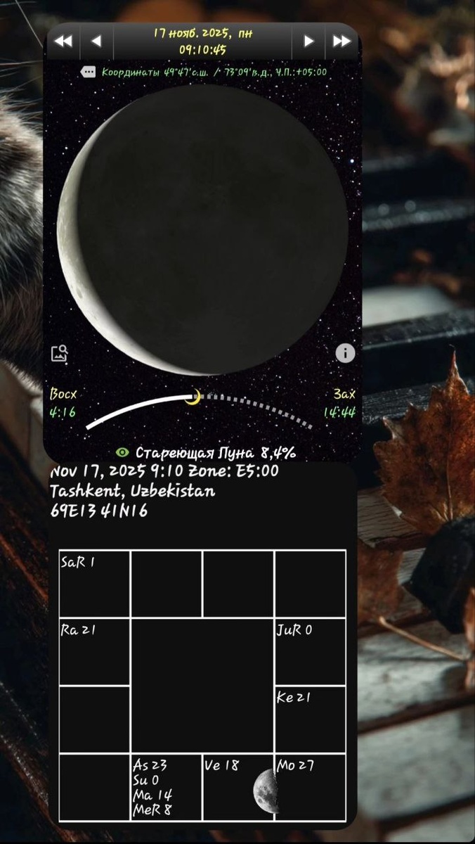 🍁🌜17.11.2025.🌛🍁 Ведическая Астрология Убывающая Луна на границе Девы и Весов . РетроСатурн. РетроМеркурий.РетроЮпитер 🍁🌜Луна убывает на границе щепетильной Девы и сомневающихся Весов, поэтому сегодня возможны небольшие муки в выборе между полезным и красивым, правильным и "не очень". Надеть шапку или сохранить прическу? Удобные, тёплые ботинки или изящные сапожки на шпильке? И здесь всё зависит от нашего намерения. Если цель этого дня-покорить мир- летать, как бабочка вы будете даже на шпильках (даже, иногда матерясь). 🐻Правило срабатывает только со шпильками, в вопросах справедливости и чести, всегда выбирайте второе -за это вы всегда потом будете себя благодарить. Девиз дня: Мы звёздная память друг друга Мы звездное эхо друг друга. Везде и во всем работает принцип зеркал и отражения. Всегда об этом помните🙏❤️ Хорошего вам понедельника🌞берегите себя и близких. © С уважением, Юля❤