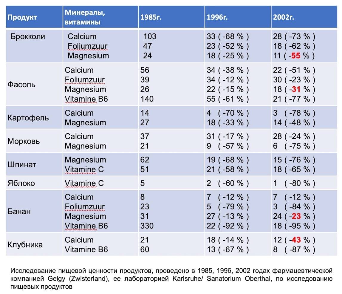Таблица нехватки питательных веществ в нашей еде.