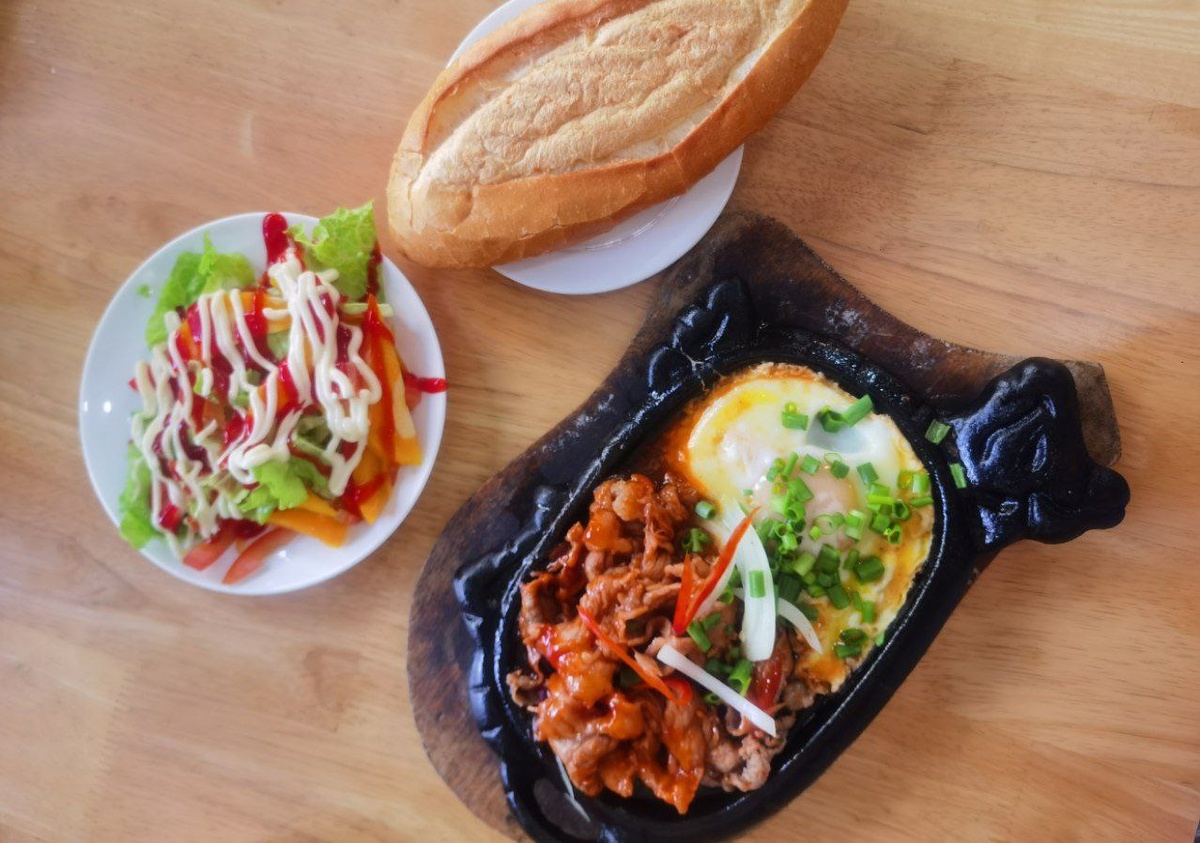 Поздний завтрак - bò né - яичница с говядиной, которую готовят вот на такой милой сковородочке. В меру остро, сладко, сытно. Салат и булку дали в нагрузку :) #времяпутешествий #вьетнам