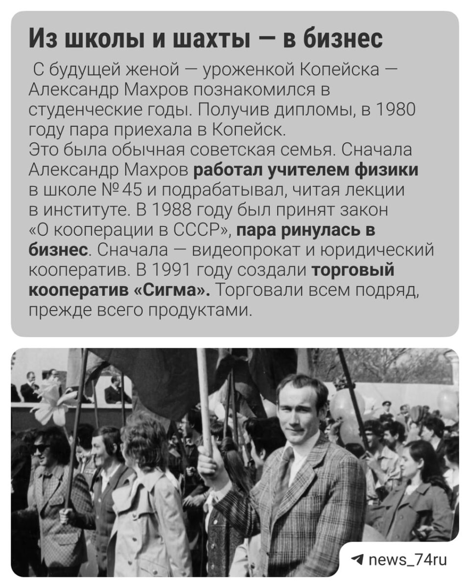 Что станет с «Короной изобилия» — компанией-лидером по производству подсолнечного масла после смерти Александра Махрова Гендиректор «УК "Сигма Холдинг"» умер 8 ноября. Учитель по образованию, в конце 80-х годов прошлого века он стал одним из пионеров кооперативного движения. Вместе с женой открыл цех по розливу подсолнечного масла и фактически с нуля создал агропромышленный холдинг федерального масштаба. Как развивалось предприятие и что с ним станет после смерти Махрова — в карточках ⬆️ Александр Махров родился в 1955 году в селе Елизаветинка Омской области. В 1980 году окончил Омский университет и приехал в Копейск. В 1988 году занялся частным предпринимательством. В 1991 году вместе с женой основал компанию «Сигма». C 2008 года был председателем городского совета промышленников и предпринимателей. В 2012 году Александру и Марине Махровым присвоено звание почетных граждан Копейска. Полную историю создания, развития и успеха компании Александра Махрова и его супруги, читайте здесь