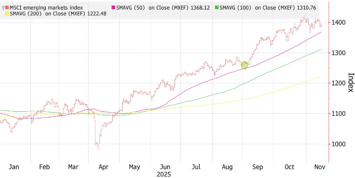 Валюты EM-сегмента почти не изменились в ожидании публикации макроотчетов из США. Они помогут понять траекторию процентной ставки ФРС Акции ЕМ-сегмента. Источник: Bloomberg Индекс акций MSCI EM вырос на 0,1%, сократив ранний подъем до 0,7%, — рынки ждут отчетности Nvidia — «барометра» ИИ‑сектора — на этой неделе, что повлияет на техсектор в Северной Азии. «Рынок смещает фокус к тому, что покажет накопившийся пакет данных из США о состоянии экономики, и к риску, что ФРС может замедлить темп снижения ставок», — говорит Кристофер Вонг, стратег Oversea‑Chinese Banking Corp. в Сингапуре. В центре внимания и азиатские валюты. Тайваньский доллар к концу дня вернулся к уровням открытия, нивелировав утренний рост — самый сильный почти за три недели — после того как центральный банк острова и Минфин США в совместном заявлении в пятницу подтвердили отказ от манипулирования курсом. На прошлой неделе власти Южной Кореи пообещали защищать вону и теперь инвесторы теперь ставят на ее восстановление. S