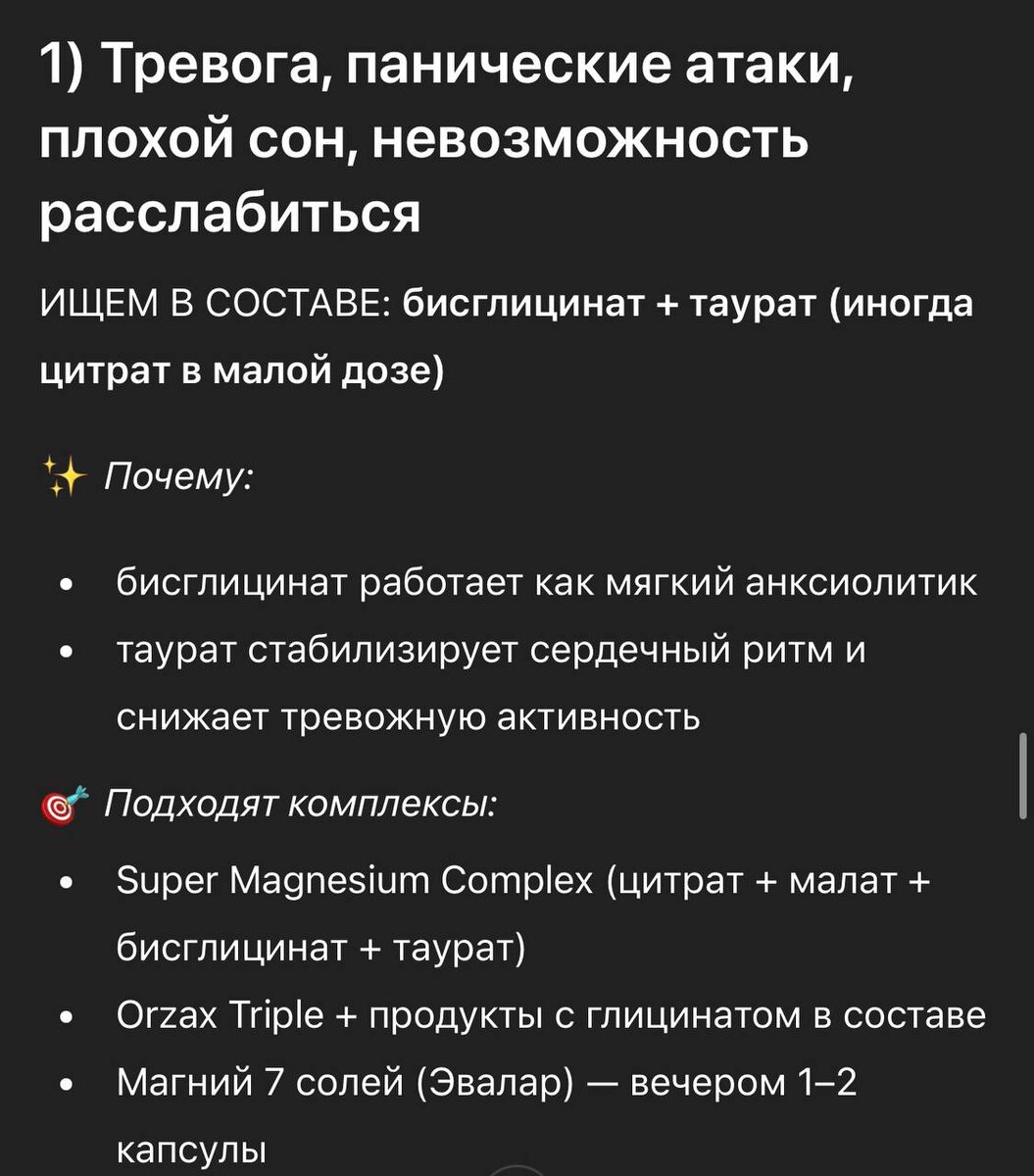 КАК ВЫБРАТЬ СЕБЕ МАГНИЙ? Выбирай не название бренда или то, что посоветовали. Выбирай то, что работает для тебя: — чтобы нервная система не выгорала; — чтобы мышцы не болели; — чтобы сердце не «стреляло» перебоями; — чтобы цикл, сон и энергия вернулись в норму.