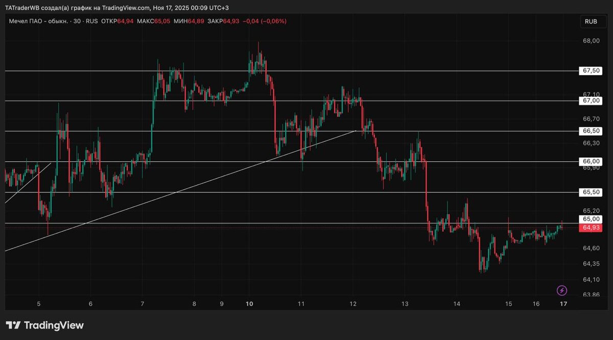 ✅ В пятницу рынок закрылся шортово плюсом снизу, по индексу осталось много «шипов», которые потенциально цена может перекрыть. Поэтому сегодня в приоритете бы смотрел в сторону шорта. Одно из условий, с чем планирую работать: $MTLR Планирую присмотреть шорт на, ложный пробой 65,5. ❌ Стоп поставлю 0,5%. Тейк +1-1,5%. При достижении +0,5% поставлю стоп в без убыток. Больше идей в Базе. Это условие торговли, то есть если будет вход, зайду. Не будет входа, НЕ зайду. Если Мечел откроется уйдет ниже / откроется ниже 64,5 - ИДЕЯ НЕ АКТУАЛЬНА! Как отыгрывать ложный пробой? (видео прикрепленное к посту) Да будет прибыль сегодня! 🤝