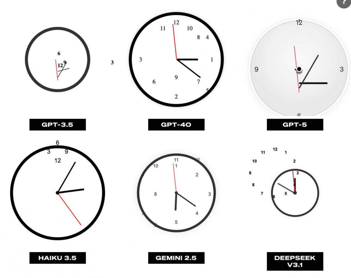 😅В новом бенчмарке ни один ИИ не выставил правильно стрелки на часах Брайан Мур провел эксперимент, который ставит в новую перспективу возможности современных ИИ. В его бенчмарке AI World Clocks девять моделей, таких как GPT-3.5, Grok 4 и GPT-5, пытались создать часы в HTML-коде. Задача, на первый взгляд простая, оказалась сложной: даже лучшие ИИ не смогли генерировать корректный циферблат каждую минуту. Одна из причин – простота промпта, в котором отсутствовали детальные инструкции. Это подчеркнуло важность не только совершенствования ИИ, но и улучшения способов взаимодействия пользователей с ними. Ведь зачастую пользователи просят "просто сделать", и ИИ должен учиться задавать уточняющие вопросы для точности запроса. #AI #ИИ #Нейросеть