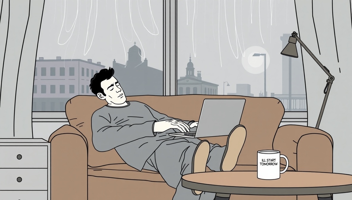 В понедельник утром, после двух дней, проведённых в обнимку с клавиатурой и внутренним криком: «Я же хотел стать человеком, который выезжает посмотреть на новые места!» Вот сижу, пью кофе, и думаю: а стоит ли заставлять себя делать что-то, если: Но есть один опасный приём — назовём его «Просмотр фильма „Моя жизнь через 5 лет“ в формате HD». Запускаю мысленно: