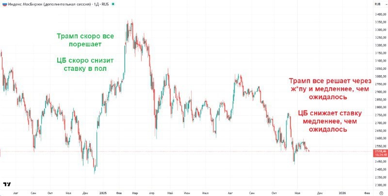 Российские акции: год сложностей, но свет в конце тоннеля 📉➡️📈 Российский фондовый рынок показал сложную динамику в 2025 году — индекс Московской биржи просел на 12%. Основные причины: геополитическая нестабильность и высокая ключевая ставка. Однако есть и хорошие новости — Банк России постепенно снижает ставку, а аналитики прогнозируют рост рынка на 50-73% к 2026-2027 годам. Инвесторы всё чаще обращают внимание на российские компании, ориентированные на внутренний рынок. Особенно привлекательными выглядят рекордные дивидендные выплаты, которые могут достичь 5,8 трлн рублей в этом году. #новости #БезПафосаФинансы #акции #инвестиции