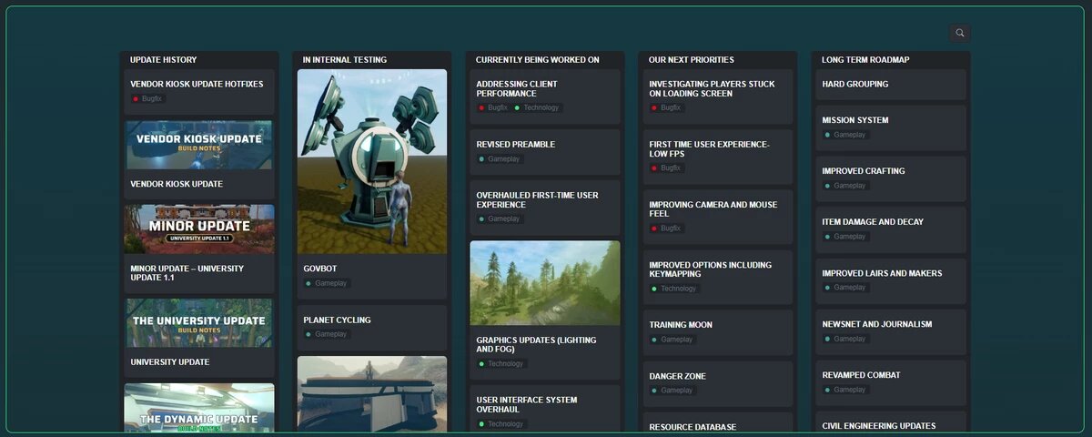 Команда Stars Reach разместила на официальном сайте новый интерактивный виджет с дорожной картой, работающей в режиме реального времени. Он призван показать игрокам, над чем ведется работа в данный момент в этой научно-фантастической MMORPG. Дорожная карта Stars Reach похожа на дорожную карту других подобных игр, таких как Star Citizen, стремясь к отчетности и прозрачности относительно запланированных и находящихся в разработке функций. Более того, при нажатии на каждый элемент отображается его описание. В первом столбце представлена «История обновлений» со ссылками на различные уже выпущенные обновления, а четыре других столбца дают общее представление о том, что готовится к запуску. В столбце «На внутреннем тестировании» представлены недавно анонсированные серьезные визуальные улучшения, а также обновления зданий и навыков, борьба с водной эрозией и удаление команды /camp. В столбце «В разработке» — почти готовое к завершению, включая переработку игрового процесса и пользовательско