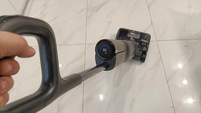 Вертикальным моющим пылесосом Roborock F25 Ultra можно пользоваться сразу после распаковки из коробки. Потребуется налить воды в бак и возможно зарядить. Пылесос устойчив вертикальном положении и при этом активирует режим ожидания. Слегка наклоняем устройство и он автоматически включается в работу по последнему выбранному режиму. Немного толкаем вперед и он сам движется вперед. Толкаем назад и он сам движется назад. За F25 Ultra не придется бегать, он очень послушный и помогает пользователю без дополнительных усилий убираться в помещении. При уборке пылесос самостоятельно передвигается вперед, может перепрыгивать через небольшие порожки в межкомнатном пространстве.