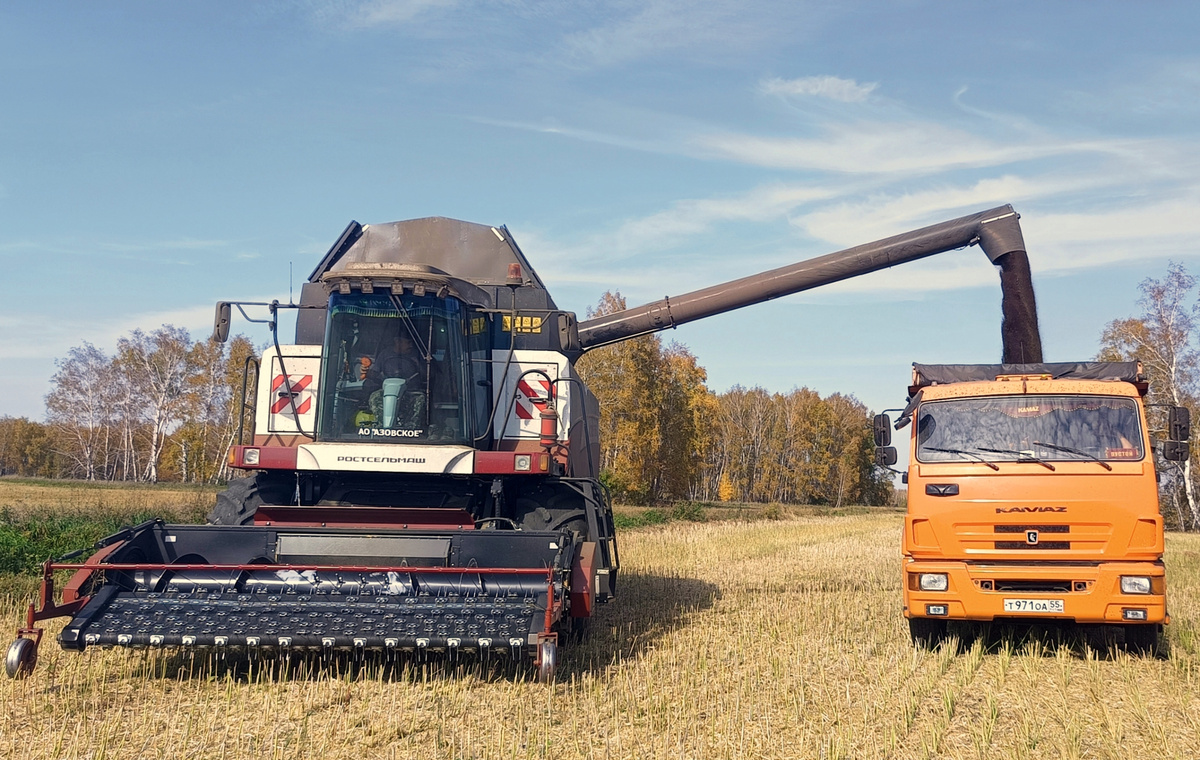 В этом году на отдельных участках рекордная урожайность по пшенице — 57 ц/га (средняя урожайность 28,3 ц/га). Ячмень 35,7 ц/га. Рапс 23,6 ц/га. Подсолнечник 21 ц/га.