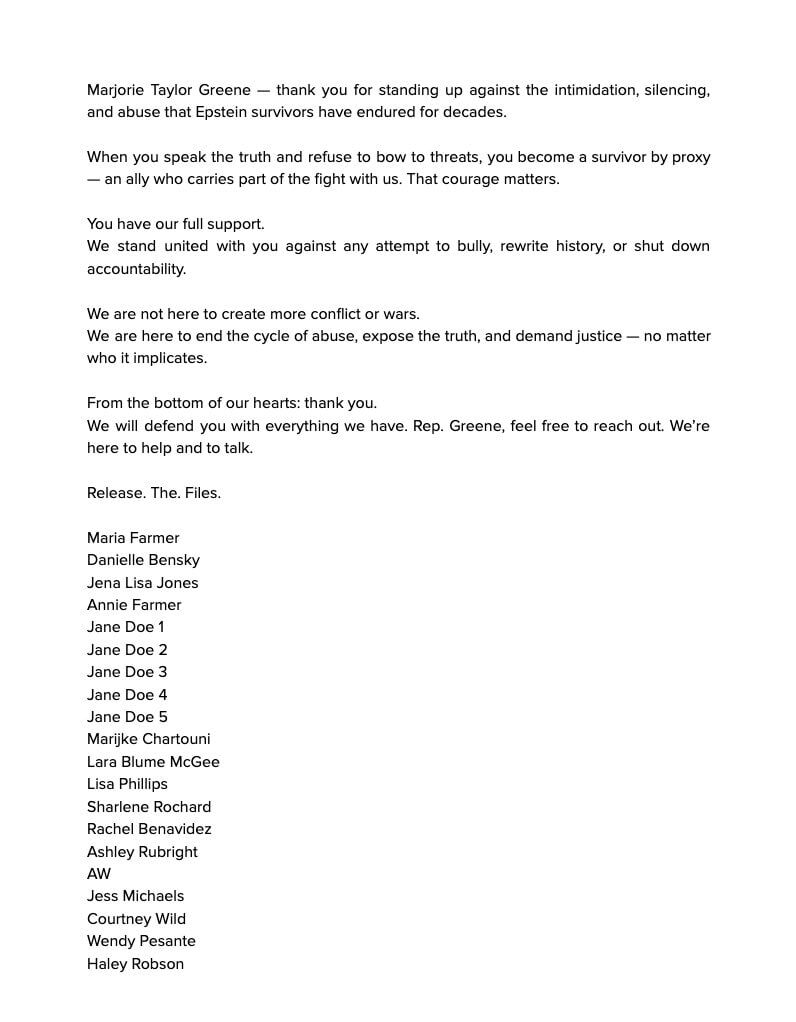 MTG will meet Epstein survivors who wrote her this letter War with Trump escalates