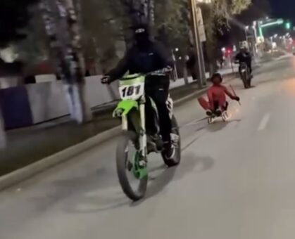 Госавтоинспекция распространила сообщение по поводу ролика, который разошёлся в соцсетях некоторое время назад. Желая получить приз от стримера Mellstroy, житель Горно-Алтайска окрасился в красное, нацепил рога и на санках прокатился по центральному проспекту города. Суть конкурса состояла в том, чтобы создать вирусный дурацкий (в оригинале сказано иначе, но 18+) тик-ток и «залететь в реки». Так вот, полиция заинтересовалась этой историей. «Выяснилось, что инцидент произошел еще 10 октября. Около 02:00 часов ночи в Горно-Алтайске 18-летний местный житель, управляя мотоциклом Racer RC 250, перевозил пассажира, который находился в санках, прицепленных к двухколесному транспортному средству, по пр. Коммунистическому. Сотрудники полиции установили личность водителя и доставили его в отдел. В ходе разбирательства установлено, что молодой человек сел за руль, не имея права управления транспортными средствами, а мотоцикл, который он использовал для перевозки товарища, не зарегистрирован в уст