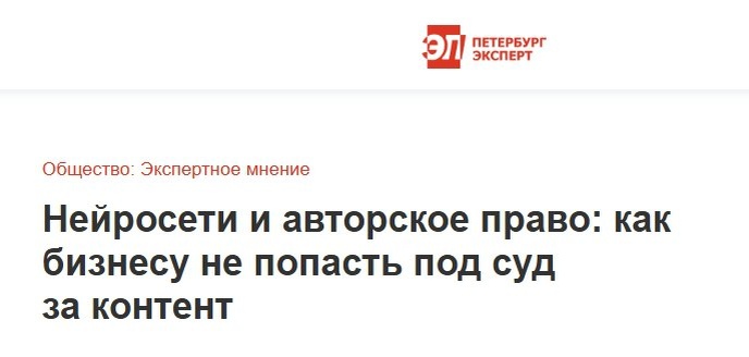⚖️ Нейросеть написала текст, нарисовала баннер и вы выложили пост - и вдруг «прилетает» претензия за нарушение авторских прав. В статье для «Петербург.Эксперт» я объяснила, почему AI-контент по закону остаётся «ничейным» и как бизнесу не попасть на штрафы. Читайте статью 👇 Нейросети и авторское право: как бизнесу не попасть под суд за контент