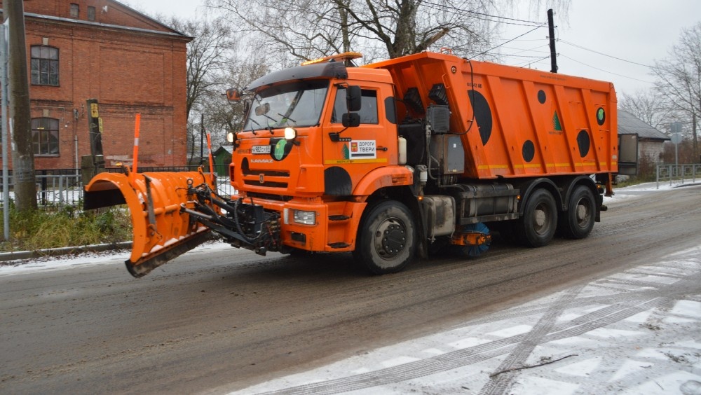 В Твери ведётся расчистка и обработка дорог после снегопада