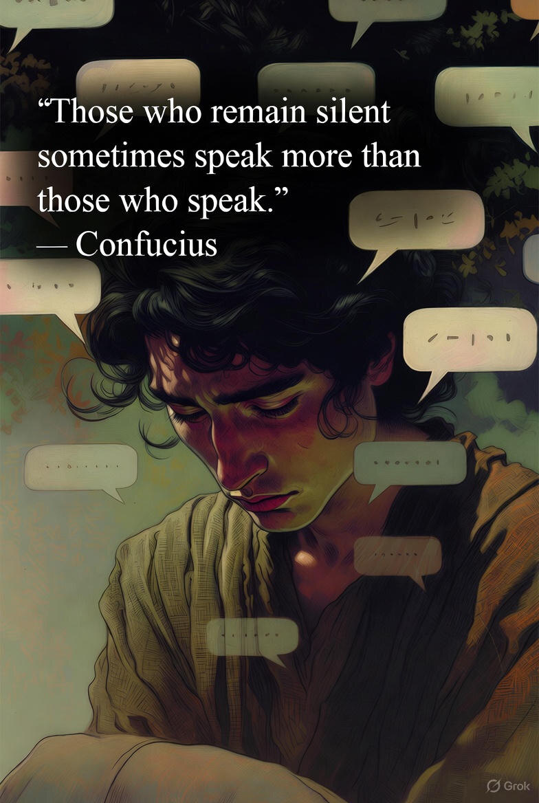 «Тот, кто молчит, иногда говорит больше, чем тот, кто говорит.» — Конфуций. Когда человеку больно, он не всегда кричит. Иногда он уходит в тишину. Причины простые. 1. Стыд за слабость. Ему кажется, что жалобы — это признак слабости. Он закрывается. 2. Страх быть непонятым. Нет смысла говорить тому, кто всё равно не услышит. 3. Нехватка сил. Когда боль большая, даже слова тяжёлые. Вывод: Молчание — это не равнодушие. Это крик, который никто не услышал. Молчание при эмоциональной боли — обычный механизм психики. Исследования показывают, что люди, которые постоянно делятся негативом, чаще сталкиваются с выгоранием, а те, кто молчат, перерабатывают эмоции внутри, что снижает краткосрочный стресс, но может создавать хронический внутренний дискомфорт. Факторы молчания: 1. Стыд за слабость — культура и воспитание учат скрывать эмоции; мозг активирует зону самоконтроля, блокируя выражение чувств. 2. Страх быть непонятым — исследования Университета Пенсильвании показывают, что люди и