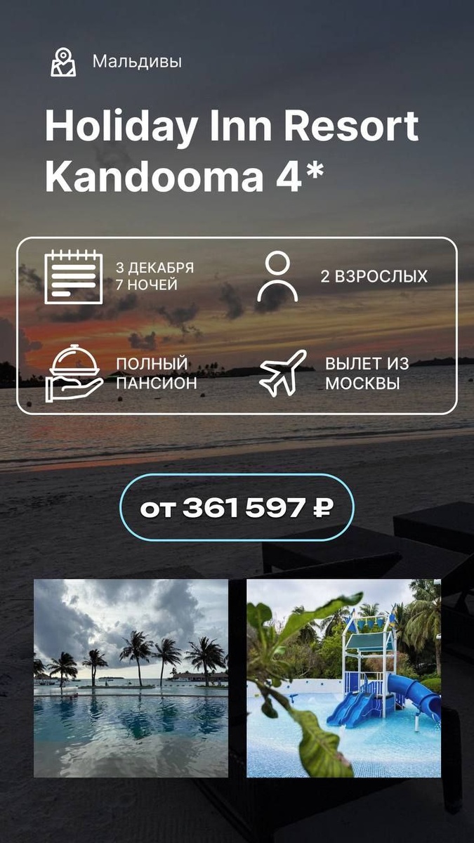 Отели: Fihalhohi Maldives 4* Holiday Inn Resort Kandooma 4* Brennia Kottefaru 5* 📍Мальдивы