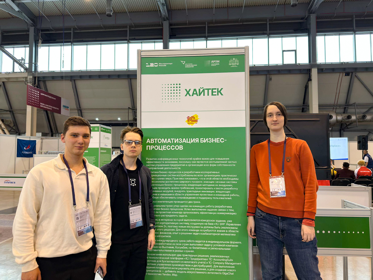 В Екатеринбурге прошел финал XII Международного чемпионата высокотехнологичных профессий «Хайтек: навыки будущего», направленного на подготовку нового поколения инженеров для высокотехнологичных отраслей промышленности. В событии приняли активное участие студенты факультета информационных технологий и компьютерных систем, отправившиеся на соревнования в рамках деятельности Центра технологий 1С, который в 2025 году был открыт в ОмГТУ.