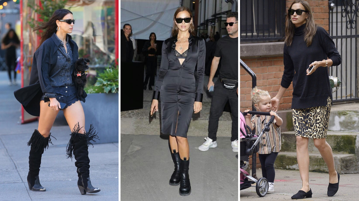 Другого объяснения у меня нет. Ну как можно было так вырядиться? Мы очень любим уличные образы Ирины Шейк. Кажется, что каждый ее выход – это что-то новое, особенное, интересное. Но иногда "особенное" – не в хорошем смысле. Сейчас покажу странные, сомнительные и откровенно неудачные образы Ирины Шейк. Микрошорты, высокие сапоги и объемная бахрома на них – не лучшее сочетание, как выяснилось. Эта бахрома визуально расширила голенище, из-за чего ноги звезды смотрятся короткими и полными. Девушка на заднем плане явно обескуражена. Мы с ней солидарны! Вот казалось бы: зачем девушке с хорошей фигурой втискиваться с одежду на размеры меньше? У меня нет ответа на этот вопрос, может быть вы подскажете? В итоге вышло то, что вышло: платье перетягивает и морщится, линия планки искривлена, пуговицы вот-вот отскочат. А только представьте, как Ирине Шейк было неудобно в таком образе. И ради чего такие мучения? Красив и коварен – вот что можно сказать про леопардовый принт. В данном случае он сыграл
