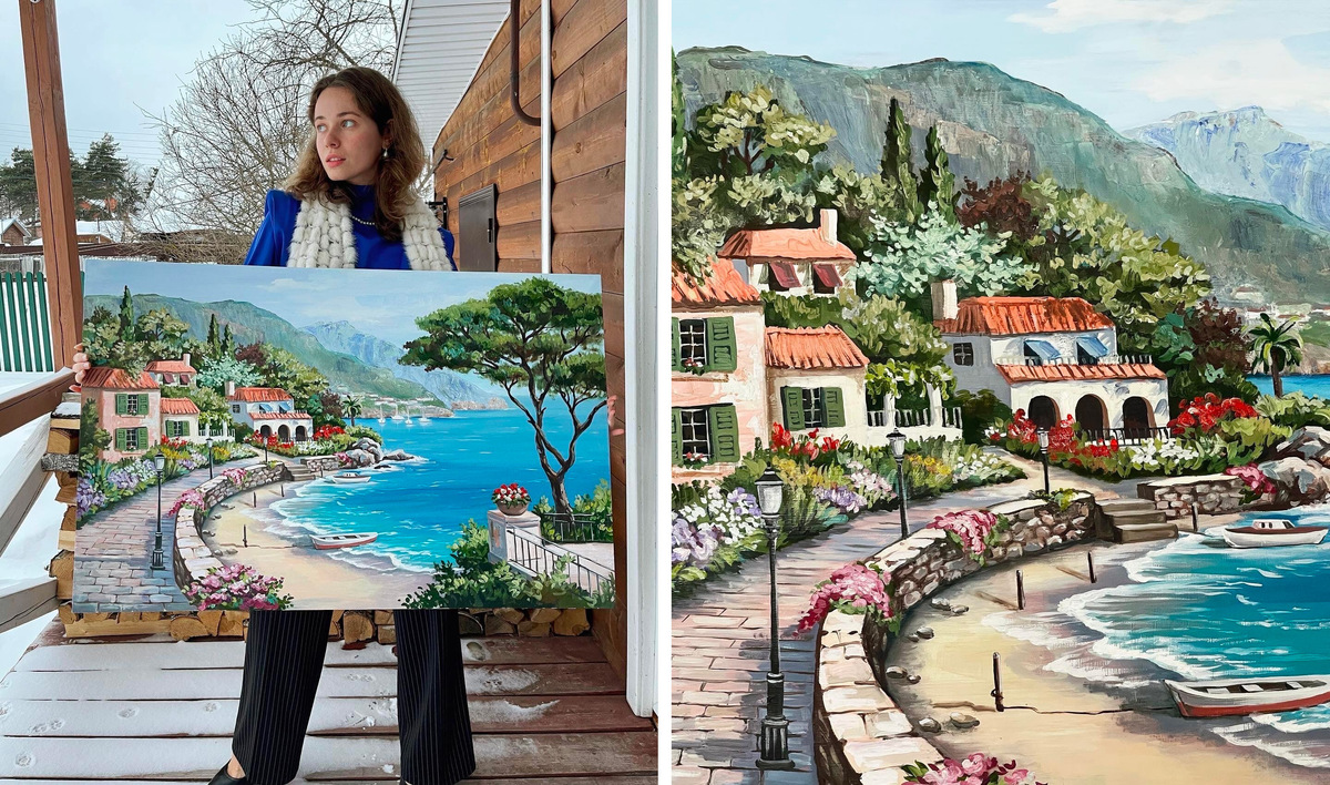Написала необходимое количество работ, успешно выставилась и начала получать первые заказы от жильцов на роспись стен в их квартирах. В начале у меня заказали итальянский пейзаж примерно в пять квадратных метров. С таким форматом я ещё не работала, но решилась попробовать — и не прогадала! До сих пор искренне горжусь этой работой.