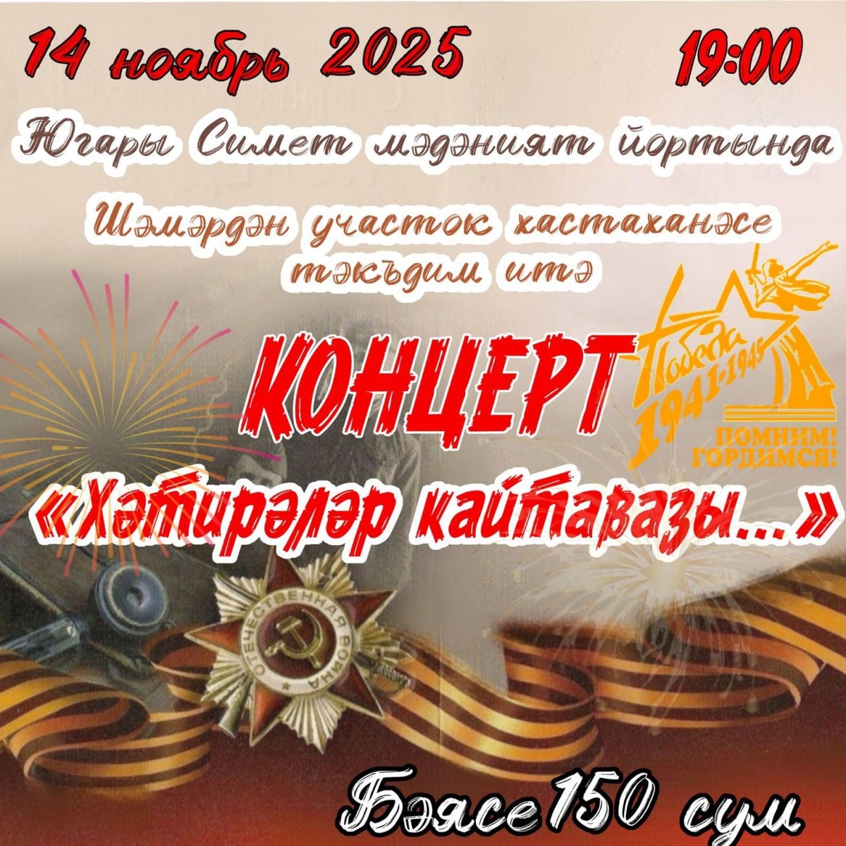 🔹🔸Югары Симет авылы мәдәният йортында Ватанны саклаучылар елы һәм Бөек Җиңүнең 80 еллыгы уңаеннан Шәмәрдән участок хастаханәсе һәм Саба район үзәк хастаханәсе коллективы концерты булды. Концерт күңелне нечкәртә торган чарага әверелде. Программада сугыш еллары җырлары, шигырьләр яңгырады, хәрби биюләр күрсәтелде, алар илебез һәм аны яклаучылар өчен якты хисләр һәм горурлык хисләре уятты.