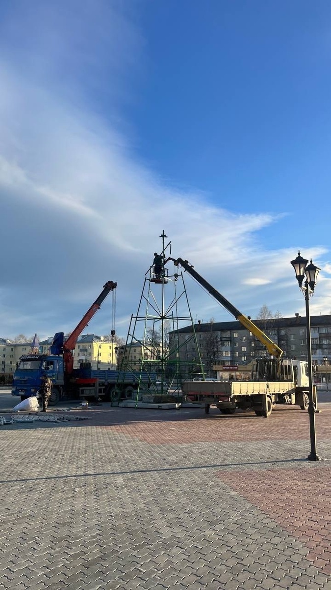 Прямо сейчас на главной площади города устанавливают 16-ти метровую новогоднюю елку