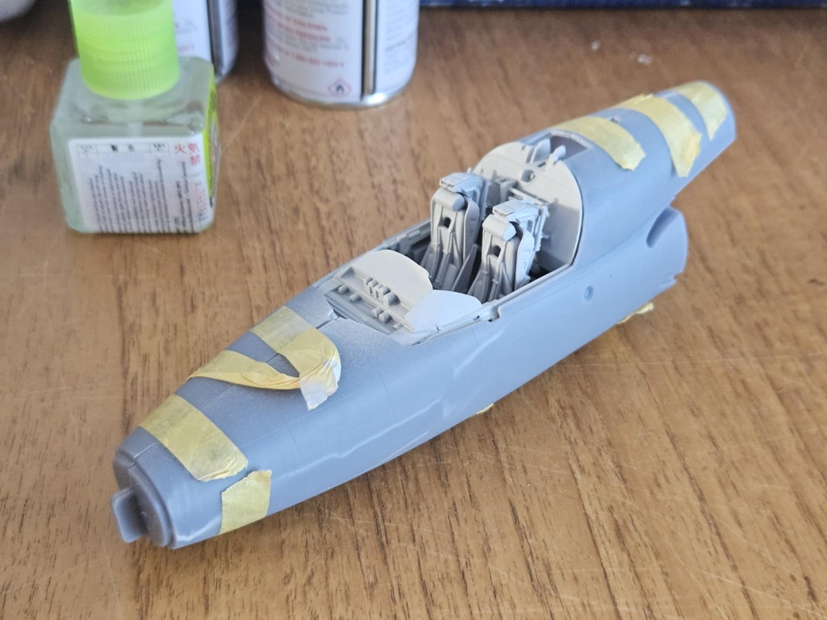 Немецкая Revell показала на выставке в английском Телфорде сборку - пока еще с использованием прототипов будущих полистироловых деталей - своей выходящей в 2026 году модели Hawker Hunter T.7/T.7A в масштабе 1/32.