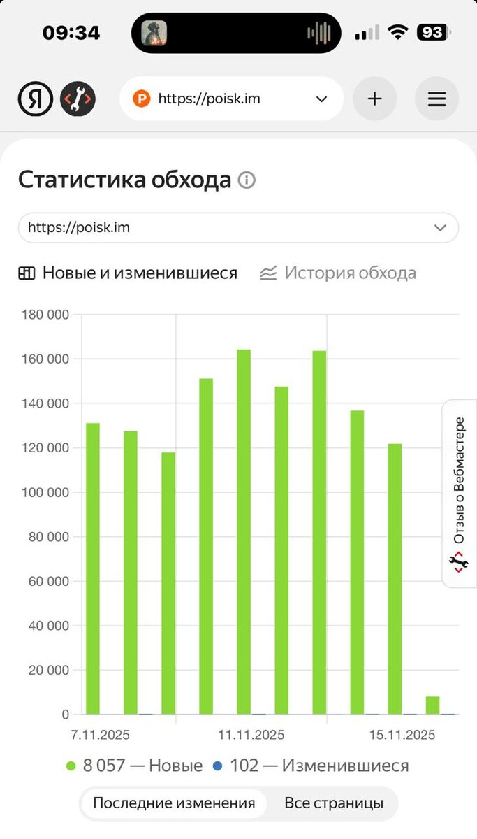 Скорость индексации одного нашего проекта. Яндекс. Как только сделали SSR, сразу краник открылся :) так что рекомендую… для больших проектов must have. Делали на nodejs (или nextjs - забыл)