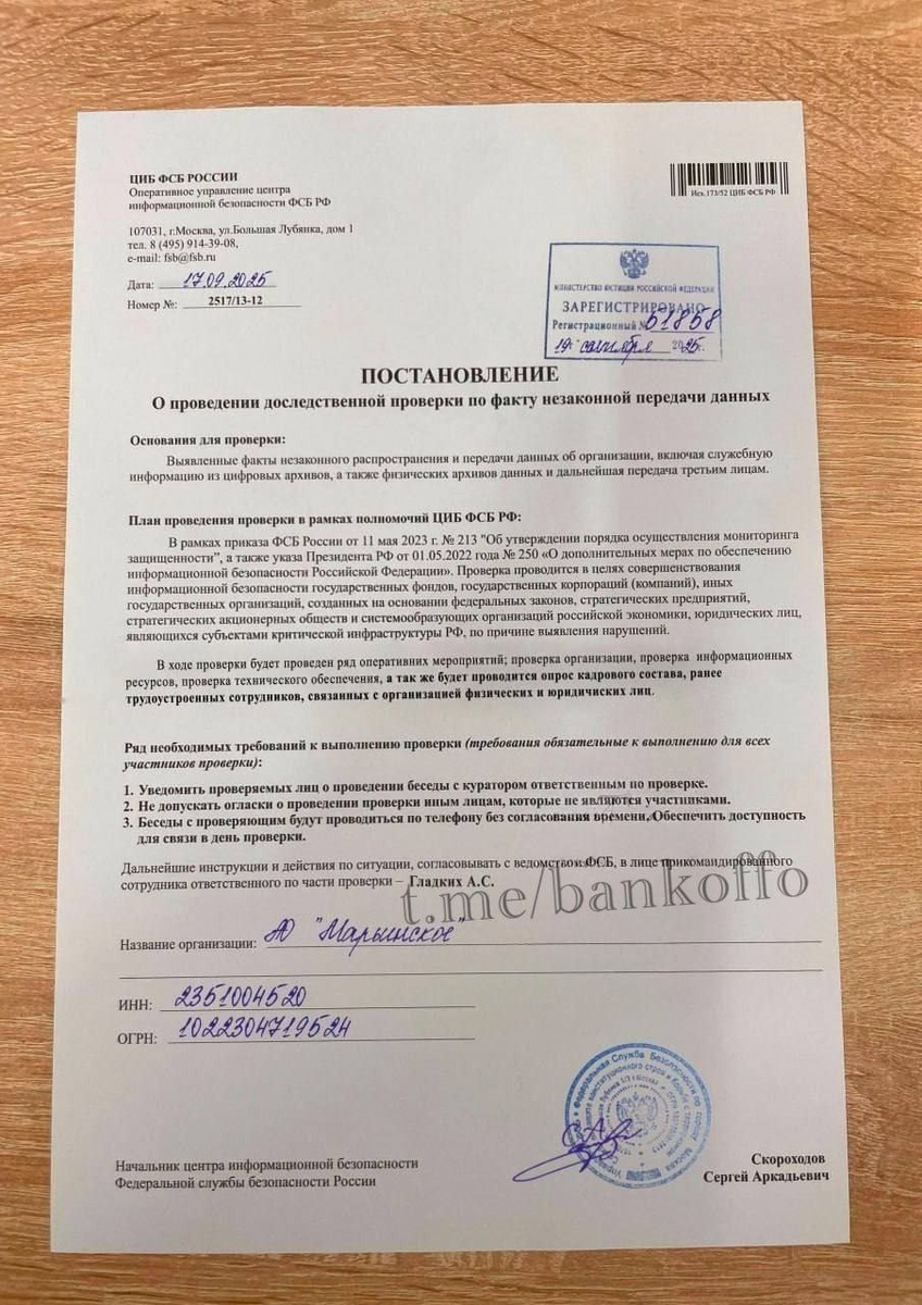 Россиянам стали массово приходить письма «из ФСБ» о проведении проверки из-за некой утечки данных. Их рассылают аферисты. Многие верят таким «документам» и в результате отдают все свои деньги мошенникам. 🤑