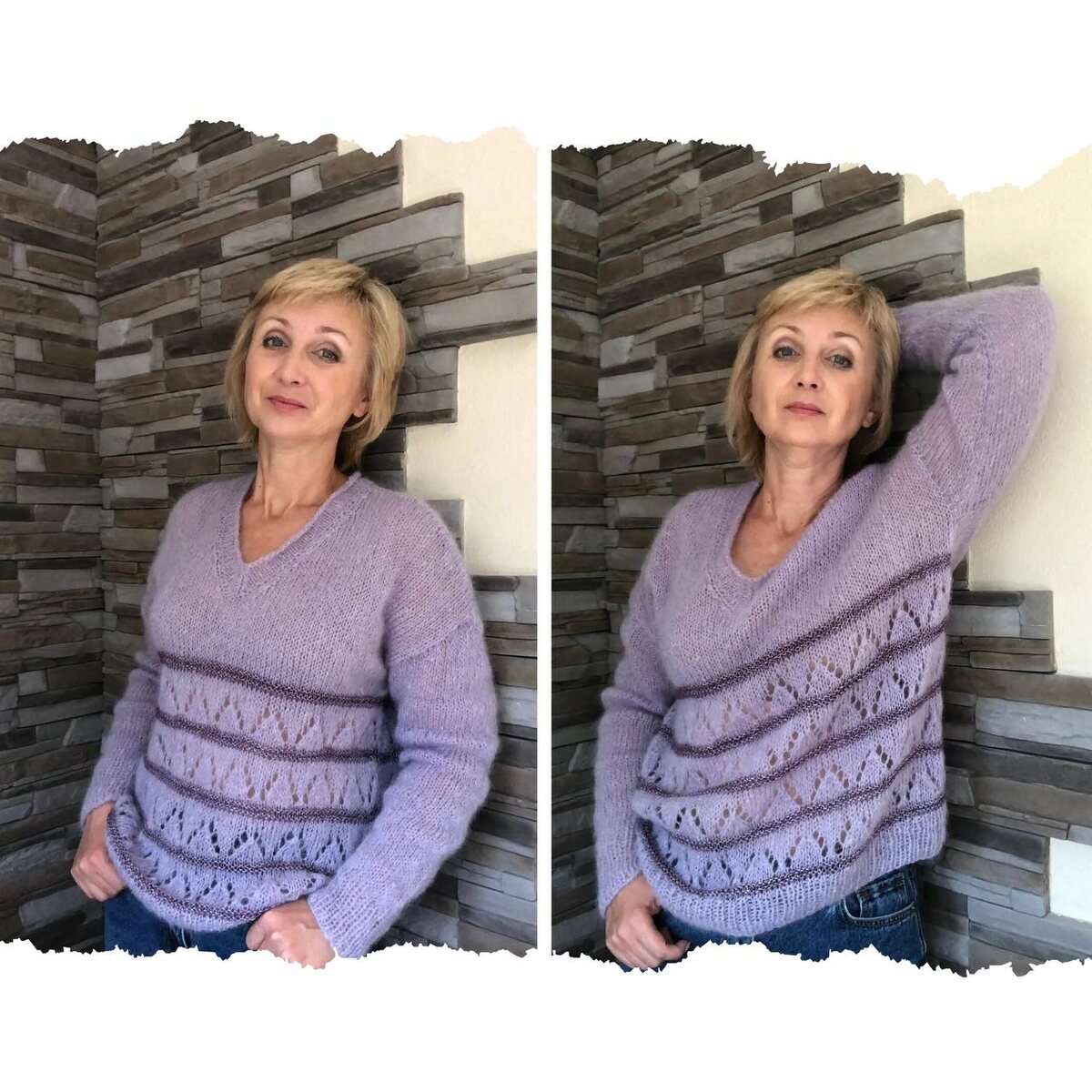 Вещи из тонкого и пушистого кид мохера получаются невесомые и очень теплые. Если связать джемпер или свитерок в одну нить, то получится так называемая "паутинка". Обычно для такой модели используют спицы большого диаметра и вяжутся такие "паутинки" достаточно легко и быстро. Если вязать в две нити, то полотно будет выглядеть примерно вот так, как пуловер на фото. Вариантов много! Здесь только дело вкуса, кому как больше нравится. Я не особо люблю "паутинки", поэтому связала вариант поплотнее, разбавив плотно полосками из другой пряжи. Предлагаю такую идею применения кид мохера. Здесь, кстати, довольно бюджетный вариант. Это - Газзал "Супер Кид Мохер". Очень даже достойная пряжа. Можно использовать ее как самостоятельную нить, а можно, как компаньон. Я добавляла ее для вязания шапок, шарфов, варежек. Если идея пришлась по душе, смотрите видео, где показываю и рассказываю, как вязала. Вязать можно на любой размер. Расчеты минимальные и простые. Всем добра, тепла и легких петелек!