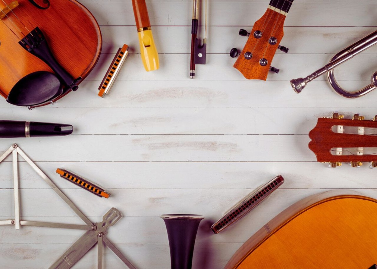 Для домашнего обучения подойдут недорогие пианино, синтезаторы начального уровня, небольшие акустические гитары или блокфлейты.