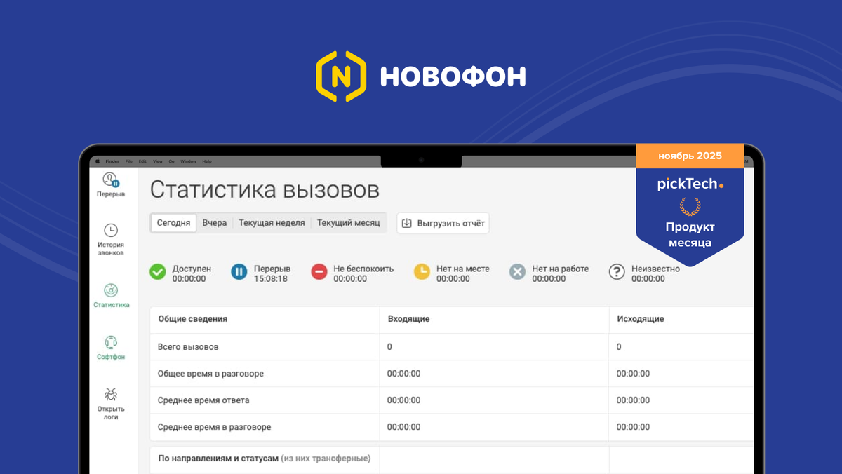 Команда pickTech регулярно исследует различные IT-решения для бизнеса, в том числе системы коллтрекинга. Novofon — наш выбор в этом месяце, потому что он:
