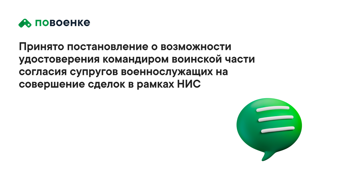 Постановлением Конституционного Суда Российской Федерации от 30 октября 2025 г. № 36-П определено, что пункт 3 статьи 35 Семейного кодекса Российской Федерации не соответствует Конституции Российской Федерации в той мере, в какой он в системе действующего правового регулирования не предусматривает возможности удостоверения согласия супругов военнослужащих на совершение сделок, указанных в нем и связанных с участием в НИС, в ином порядке, чем путем очного взаимодействия дающего согласия лица и нотариуса, когда в находящихся в труднодоступной или отдаленной местности пунктах дислокации воинских частей (соединений, учреждений и военно-учебных заведений), где супруги проживают вместе с военнослужащими, нет нотариусов и фактически не ведется периодический прием граждан нотариусами. Исходя из этого, Конституционный Суд Российской Федерации постановил, что до вступления в силу соответствующих изменений в действующее правовое регулирование командиры (начальники) воинских частей (соединений, у