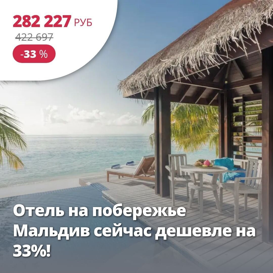 Цена тура: 282 227 руб/чел Отель на побережье Мальдив сейчас дешевле на 33%! 4*, Мальдивы из Москвы 3 декабря на 11 ночей, Завтрак, Ужин. BANDOS MALDIVES (EX. BANDOS ISLAND RESORT) 4* Курортный отель на красивом одноименном острове всего в 10 минутах езды на катере от аэропорта Мале. Чистая голубая вода, яркая растительность и белые песчаные пляжи создают ощущение спокойствия. Современно оборудованный центр дайвинга, несколько ресторанов и баров, детский клуб и открытый бассейн. Отлично подойдет для семейного отдыха с детьми или романтического путешествия. Приятная цена для отдыха на тёплом море Подробнее здесь: https://starttime.ru/search-tours?tvcard=yss4lf Лучшие туры https://starttime.ru/search-tours #ЛучшийТур #СтартТайм