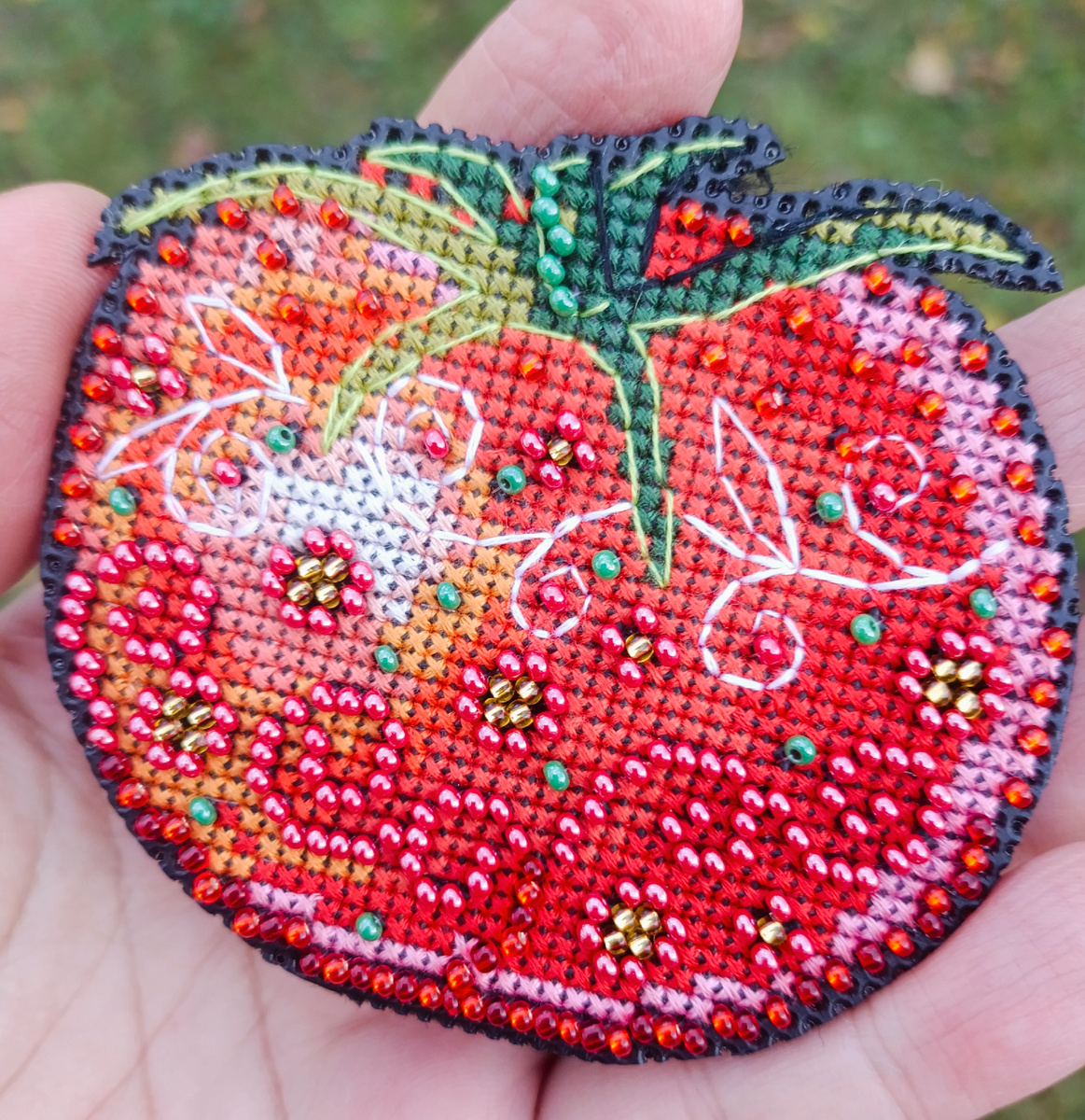 В прошлой статье я писала о том,что на осенних каникулах дочери мы поехали в небольшой отпуск к моим родителям. С собой, как обычно, я взяла много начатых процессов вышивки,один набор для старта и дизайнерскую схему из СП "Со вкусом-2 " от Юлии Сергеенко. За неделю у меня случился один полноценный финиш. "Помидор" от Юлии Сергеенко я успела вышить полностью и даже отчиталась вовремя,получив бонусную схему ,как я и хотела. Погода в этот раз не особо нас баловала,почти все дни шли дожди и мы сидели дома. Но на вышивке это сказалось благоприятно. "В ночном лесу " от Риолис - мой старичок. Начала я его пару лет назад ,да так и не закончила. Вышивала я тогда ещё по бумаге, сейчас я полностью перешла на Сагу. Недавно в интернете мне попался перенабор,я его скачала и вот наконец-то дошли руки внести прогресс. Дело это не лёгкое,особенно из-за того , что вышивала я не строго по порядку,а носило меня на канве от участка к участку. Пару часов заняло у меня это дело. 3292 крестика по марафон