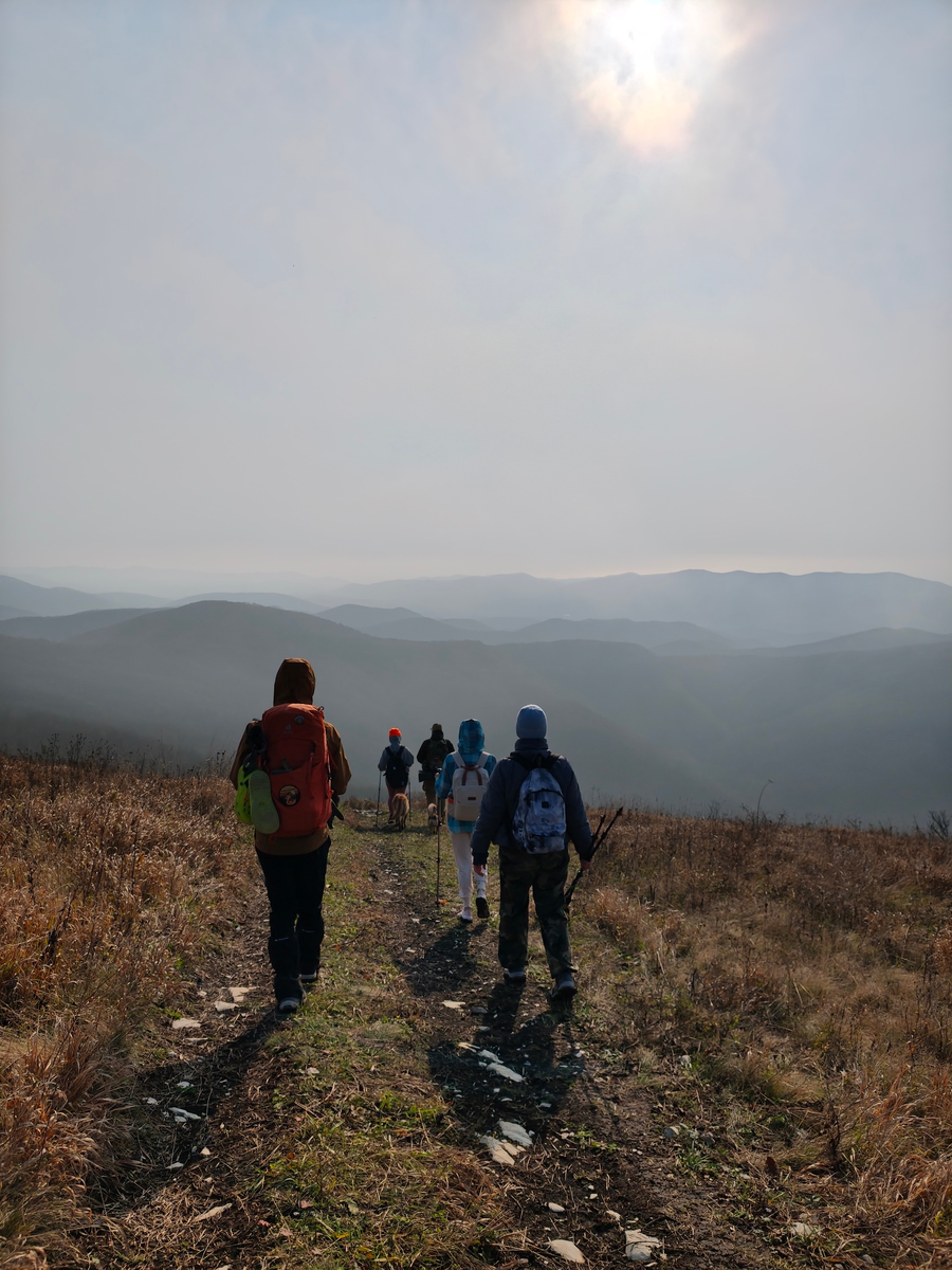 Каждый раз, когда я планирую походы на дальние расстояния, меня одолевают смутные сомнения, а стоит ли? 21 километр пешком, грязь, холод пробирает даже самые закрытые участки нашего тела, особенно осенью, когда невозможно предугадать настроение погоды. Но! У нас есть преимущества: понимание закона светового дня и группа людей, которых объединяет любовь к запаху костра и прелести дымчатых гор, окруженных фатой из пепла. Да здравствует новый день и новая возможность преодолеть страх покорения высот, да еще и без рекомендованной страховки. И спасибо трекинговым палкам, которые на протяжении всего пути жалели наши колени. Подъем на гору был нелегкий, но мы справились. Природа не скупа на награды для тех, кто видит цель и преодолевает препятствия. Крест, как символ победы над собой - вселяет веру. Спуск был намного легче, благодаря братьям нашим меньшим, которые с каждым шагом, покорно шли за нами и подталкивали носом к преодолению новых препятствий. Всего 7 километров и Вы у обветшалого