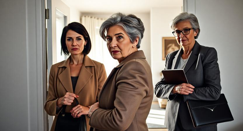 Светлана услышала звонок в дверь и замерла с чашкой кофе в руках. Суббота, десять утра, никого она не ждала. Через глазок она увидела знакомую фигуру — свекровь Раиса Петровна. Но рядом с ней стояла незнакомая женщина лет шестидесяти в строгом сером пальто и с кожаным портфелем в руках.