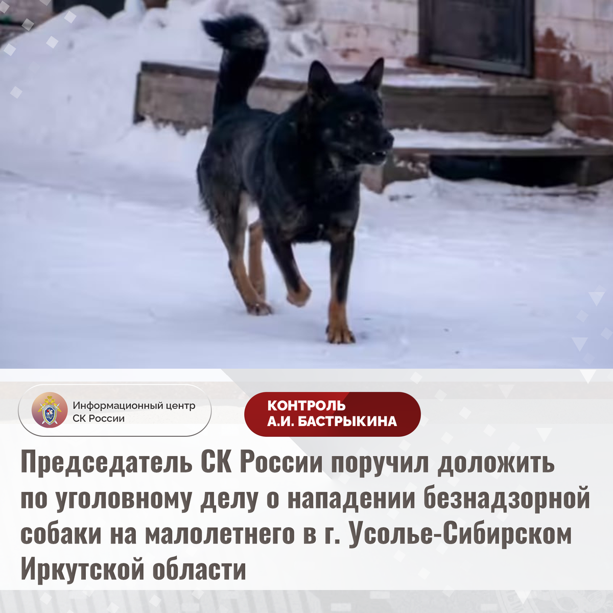 Председатель СК России поручил доложить по уголовному делу о нападении безнадзорной собаки на малолетнего в г. Усолье-Сибирском Иркутской области