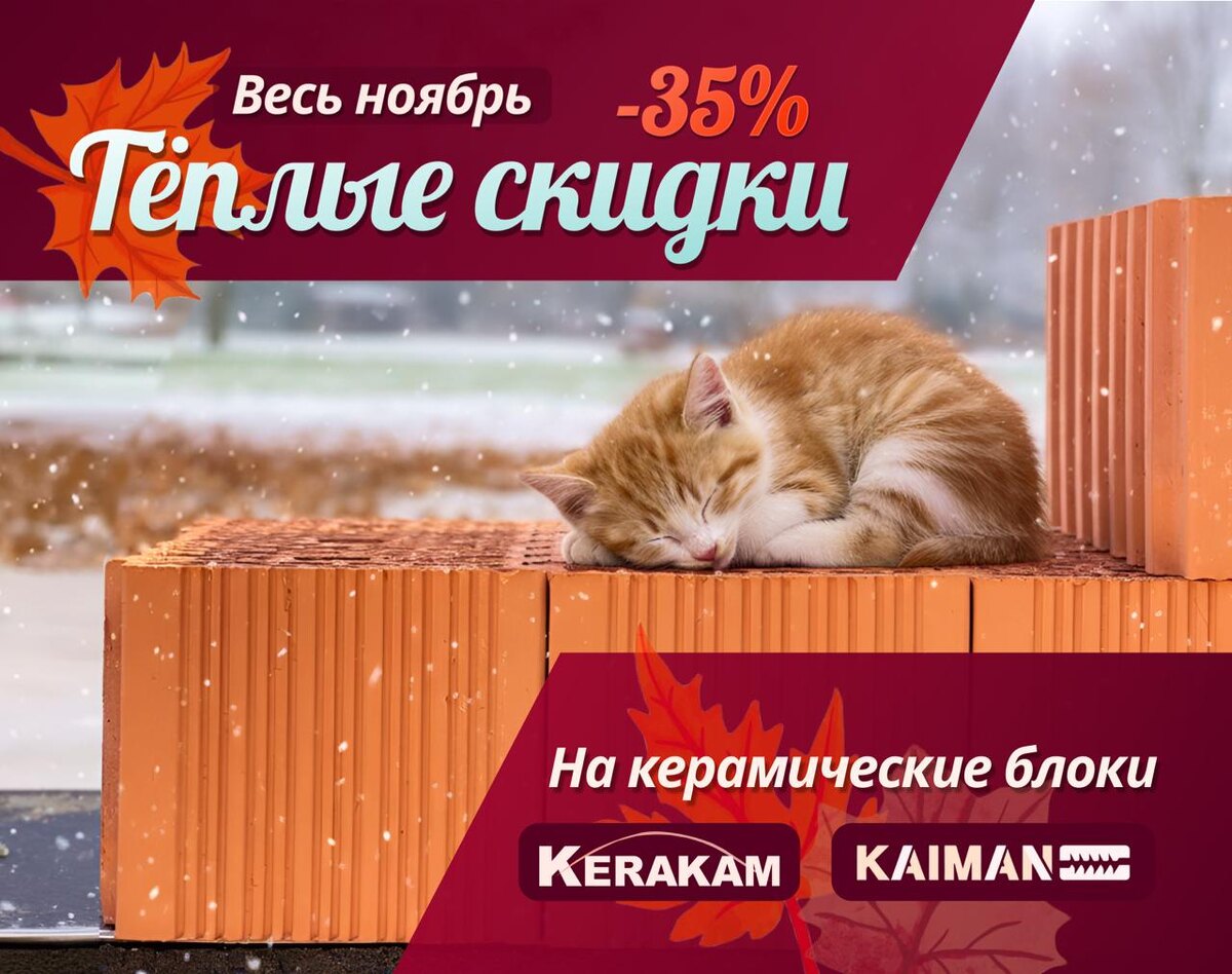 ⏰ ВНИМАНИЕ! До окончания акции -35% на блоки осталось 14 дней! Успейте купить тёплые и надёжные керамические блоки по выгодной цене, пока действует ноябрьская скидка. Вас ждет: ✅ Тёплая керамика KERAKAM и КАЙМАН (включая популярную новинку КАЙМАН 44💥) ✅ Скидка 35% прямо от производителя ✅ Проверенная прочность, морозостойкость и энергоэффективность Не упустите шанс построить тёплый и безопасный дом выгодно! Срок действия акции истекает 30 ноября. 🔥 Успейте сделать выгодную покупку! 📅 Осталось всего 2 недели! 📍 Все условия уточняйте у менеджеров на сайте skkm.ru