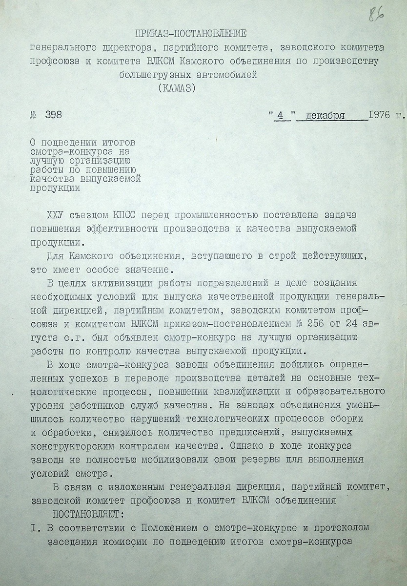 21 ноября 1975 года вышел приказ генерального директора КАМАЗа №235, который положил начало созданию общекамазовской системы контроля качества. (Ранее рассказывал об этом здесь - https://dzen.ru/a/X7tg_5NTjDA5Mzoy) Уже в 1976 году на КАМАЗе были разработан комплекс мероприятий, направленный на усиление входного контроля поступающий на автозавод узлов и комплектующих. Летом 1976 года по заводам-смежникам был организован авторейд (подробнее здесь - https://dzen.ru/a/YKXviitfvSzfVAa3) В том же 1976 году на КАМАЗе был проведён первый смотр-конкурс на лучшую организацию работы по повышению качества выпускаемой продукции. В приказе-постановлении от 4 декабря 1976 года вы можете прочитать, какие подразделения заняли призовые места. 6 июля 1976 года 1976 года вышел приказ генерального директора КАМАЗа «Об организации обучения персонала служб контроля качества». Внизу вы можете посмотреть фотографии, сделанные во время проведения конкурса профмастерства контролёров ОТК. Предположительно, 1978