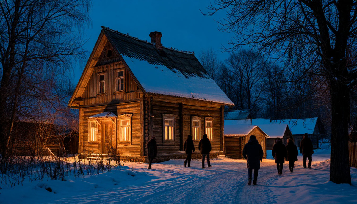 Дорога шла на север, пока лес не стал сплошной стеной. Чем дальше мы ехали, тем реже встречались следы — пара снегоходов, старые колеи. Посёлок встретил нас тишиной и пустотой: обледенелые окна, прогнившие крыши, такая тишина, что слышно, как остывает машина.