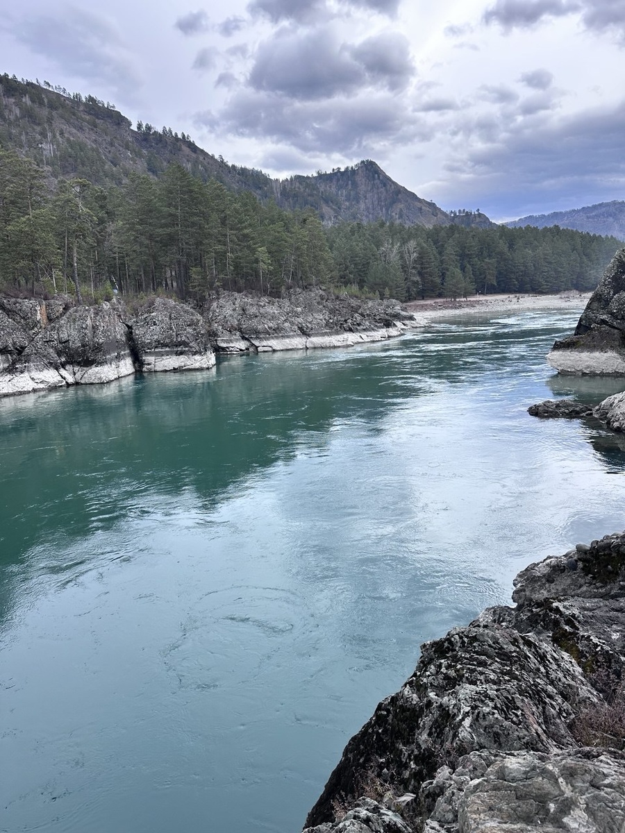 Если набрать в интернете «Катунь Алтай», на экране появятся десятки фотографий: прозрачная вода, бирюзовые переливы, горы в тумане и небо, отражающееся в реке, будто зеркало. Кажется, что эта красота здесь всегда. Но у Катуни свой ритм, и увидеть её в том самом бирюзовом цвете удаётся не каждому. Катунь живёт у подножия Белухи — самой высокой горы Алтая. В начале своего пути река собирает воду со снежных вершин и ледников, слушает подземные родники и принимает в себя множество притоков. Весной, когда солнце начинает нагревать камни и пробуждать горы, река наполняется талой водой. Потоки сносят вниз песок, землю, частички породы, и вода становится густой, тяжёлой, гремящей. Это то время, когда Катунь показывает свою мощь. Когда лето набирает силу, ледники тают медленнее, а дожди проходят всё реже. Вода становится спокойной, прозрачной. Тогда и проявляется тот самый оттенок — чистый, сияющий, похожий на цвет драгоценного камня. В нём будто соединились небо, горы и зелень прибрежных склон