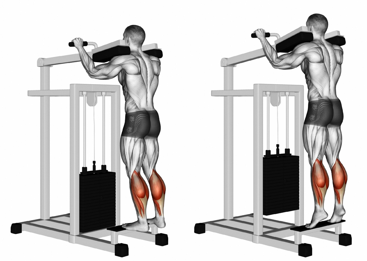 Это упражнение - безусловный лидер для развития взрывной силы и мощи голеней. Оно задействует весь мышечный массив икр в самой эффективной биомеханической позиции. Но его главное преимущество - универсальность (его можно делать и в тренажере и с гантелями и со штангой), а если ещё стопы под разные углы ставить, но то можно изолированно прокачать каждую головку) Почему именно это упражнение Положение стоя с прямыми ногами максимально нагружает икроножную мышцу - самую крупную и заметную часть голени. Именно она отвечает за прыгучесть, скорость и толчковую мощь. Камбаловидная мышца активно участвует как стабилизатор. Ключевые технические моменты: 1. Положение стоп: Носки прямо или чуть развернуты наружу. Пятки свободно опускаются за край платформы. 2. Траектория движения: Опускайтесь медленно (3-4 секунды), чувствуя максимальное растяжение в нижней точке. Не делайте "пружинок" внизу! 3. Фаза подъема: Взрывное мощное движение вверх. Представьте, что вам нужно оттолкнуться от платф