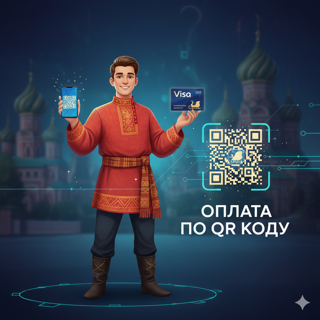 Все операции соответствуют международным стандартам. Двухфакторная аутентификация, шифрование данных. Законность подтверждена: платежи по QR в России — стандарт СБП, зарубежные — Visa.
