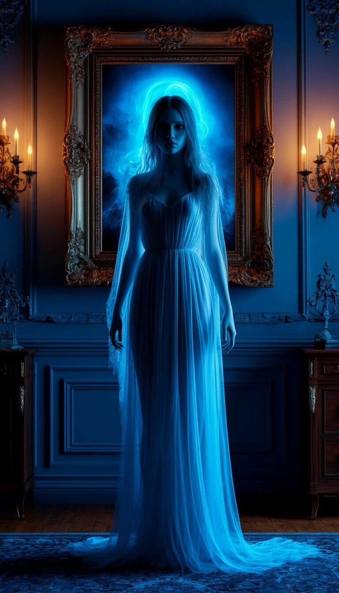 Просто дух уже почувствовал ваше присутствие и собрался выйти из картины, а тут ты со своим фотоаппаратом и вспышкой, вот и получился двойной эффект, от которого ты ослеп, да перепугался.Все, доброй ночи!